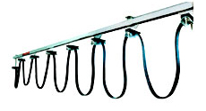 該產(chǎn)品的工作原理見(jiàn)工程應(yīng)用圖示(1)扁平電纜的始端(接現(xiàn)場(chǎng)接線盒)固定于導(dǎo)軋的始端固定器上,再根據(jù)現(xiàn)場(chǎng)允許運(yùn)行的空間,間隔適當(dāng)?shù)拈L(zhǎng)度(1-2.5mm)依次固定在攜帶電纜的四輪臺(tái)車(chē)上,電纜未端(接用電源)因定在最后一個(gè)小車(chē)(牽引車(chē))上。通過(guò)拔車(chē)上的彈簧拔小車(chē)往復(fù)移動(dòng),通過(guò)電纜的拖拽(長(zhǎng)度如超過(guò)20m應(yīng)考慮原用牽引繩,使電纜免受拉力)作用,帶動(dòng)所有的小車(chē)在軋道中任意速度自由滑動(dòng),導(dǎo)軌安裝簡(jiǎn)便,無(wú)需調(diào)試,且無(wú)觸點(diǎn)接觸供電等優(yōu)點(diǎn),安全可靠。